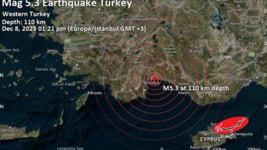 مرکز این زلزله در منطقه سریک، شرق آنتالیا، با قدرت ۴.۹ ریشتر و عمق ۲۸.۲۵ کیلومتری زمین بوده است. تاکنون هیچ خسارت یا تلفاتی گزارش نشده است. منبع: اسپوتنیک ۲۶۴ ۳۳