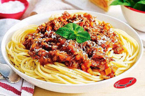 در مورد پاستا، هرگز روغن تو آب جوش نریزید، چون سس بهش نمیچسبه. اگر بچهها حساسن به ادویه، فلفل رو کمتر کنید. می تونید گاهی ریحان تازه یا آویشن اضافه کنید تا طعم مدیترانهای قویتر بشه. این غذا منبع پروتئین خوبیه، اما اگر رژیم کمچربی دارید، از گوشت بدون چربی استفاده کنید.