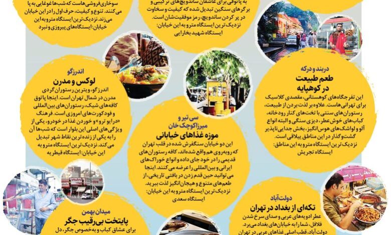 تهران تنها شهر برجها و ترافیک سنگین نیست؛ این شهر زیر پوست شلوغیهایش، خیابانهایی دارد که بوی کباب، فلافل و ساندویچهای نوستالژیک از آنها به مشام میرسد. روزنامه همشهری در گزارشی تصویری، نقشهای از خوشمزهترین خیابانهای پایتخت ارائه داده است؛ جایی که هر محله با طعمی خاص شناخته میشود.