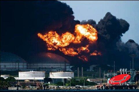 ببینید | آتش‌سوزی گسترده در تأسیسات نفتی روسیه