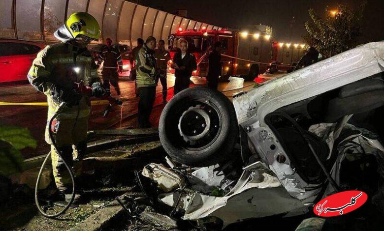 ببینید | اولین تصاویر از تصادف سنگین پژو ۲۰۶ در بزرگراه یادگار امام