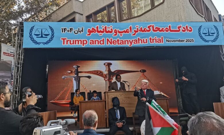 ببینید | برگزاری دادگاه محاکمه ترامپ و نتانیاهو در مراسم ۱۳ آبان