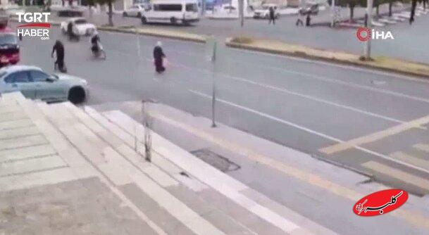 حادثهای که در خیابان مولانا هالیت در منطقه باغلار دیاربکر رخ داد، زنی که نامش فاش نشده است، هنگام تلاش برای عبور از جاده با یک موتورسیکلت برخورد کرد. در نتیجه این برخورد، عابر پیاده و راننده موتورسیکلت چندین متر پرتاب شدند. منبع: TGRT HABER