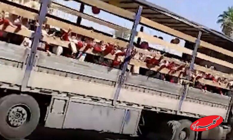 ببینید | جابجایی دانشآموزان یک مدرسه در جهرم با کامیون