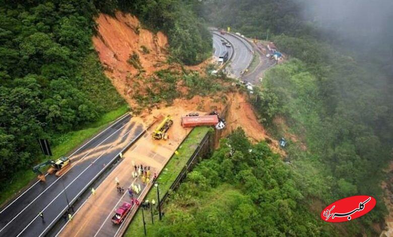 ببینید | حادثه رانش زمین در خوزستان؛ سقوط کامیون در جاده ایذه