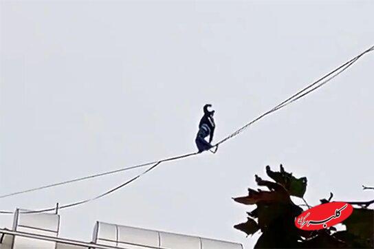 ببینید | حرکت خطرناک دختر جوان در تهران روی سیمهای بین ساختمان