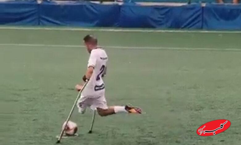 ببینید | ضربه ایستگاهی دیدنی در فوتبال توسط یک فوتبالیست قطع عضو با یک پا!