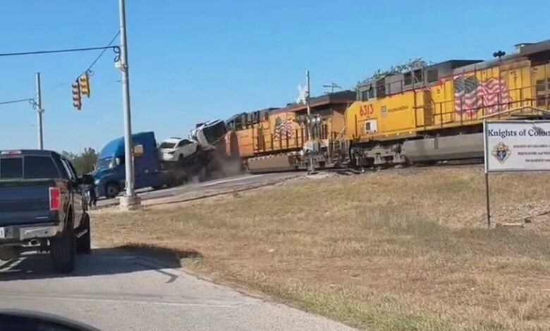 در حادثه‌ای شوکه‌کننده در ایالت تگزاس، یک قطار با سرعت بالا به تریلی خودروبر که مملو از خودروهای سواری صفر کیلومتر بود، برخورد و آن را به‌طور کامل نابود کرد. منبع: جماران