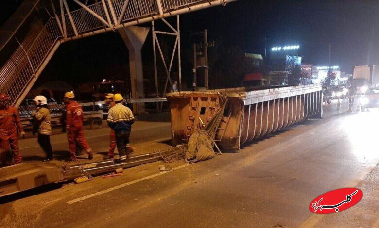 ببینید | لحظه نشست جاده و سقوط کامیون هنگام عبور از پل در محور سیریک-جاسک