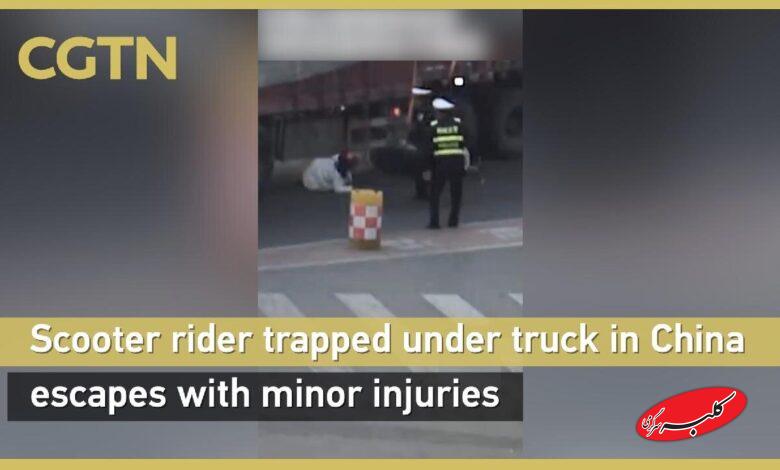 در شهر تونگچِنگ واقع در استان آنهوی چین، زنی که با اسکوتر برقی در حال حرکت بود، بر اثر برخورد یک کامیونِ در حال گردش به زمین افتاد و زیر آن گرفتار شد. پلیس با توقف فوری کامیون و اقدام سریع موفق شد او را نجات دهد. خوشبختانه این زن تنها دچار خراشهای سطحی شد و آسیب جدی ندید. لحظه نجات در ویدئویی منتشر شده است./CCTN