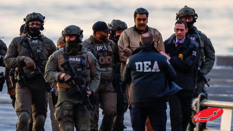 نیکولاس مادورو در حالی که برای حضور در دادگاه به منهتن می‌رفت، از بازداشتگاهی در بروکلین به داخل هلیکوپتر اسکورت شد. منبع: اسپوتنیک