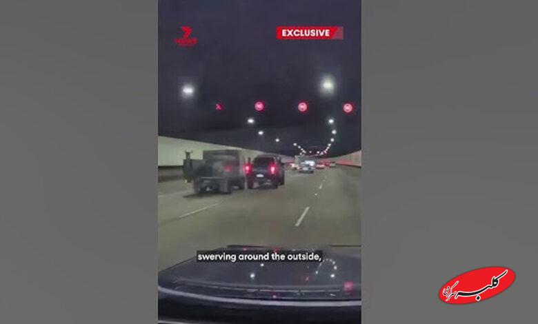 یک حادثه خشونت جادهای در تونل رخ داده است، که ظاهراً یک کامیون مسیر یک وانت سیاه را مسدود کرد و منجر به تشدید درگیری شد. فیلم دوربین داشبورد، راننده وانت را در حال انحراف به بیرون و برخورد با کامیون قبل از فرار با سرعت از صحنه نشان میدهد. منبع: 7newssyd