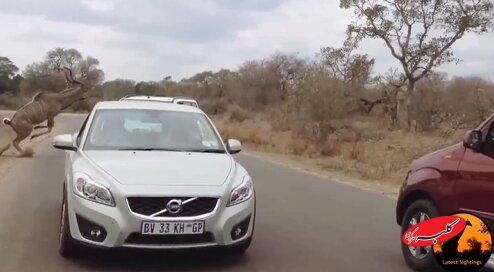 ببینید | پرش حیرتانگیز کودو از روی خودرو برای فرار از دست شیر