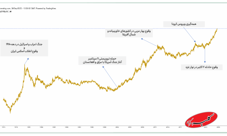 تا اواخر قرن بیستم میلادی، بسیاری از کشورها طلا را بهعنوان پشتوانه پولهای ملی خود در بانکهای مرکزی ذخیره میکردند. با فروپاشی نظام پولی برتون وودز در سال ۱۹۷۱ و آغاز عصر پولِ اعتباری (فیات)، ارزش طلا به عنوان یک دارایی جایگزین و ذخیرهکننده ارزش، رشد چشمگیری یافت. در حقیقت، نوسانات تاریخی قیمت طلا همواره با بحرانهای اقتصادی و سیاسی در سراسر جهان ارتباط مستقیمی داشته است. بهعبارت دیگر، طلا یک دارایی قدرتمند برای دوران ابهام و عدماطمینان نسبت به آینده اقتصاد محسوب میشود. در نمودار زیر میتوانید روند قیمت طلا را در یک دوره ۵۰ ساله مشاهده کنید: