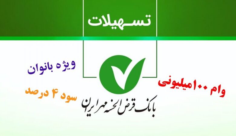 دریافت وام ۱۰۰ میلیون تومانی بدون ضامن با طرح اندوخته بانوان بانک مهر ایران