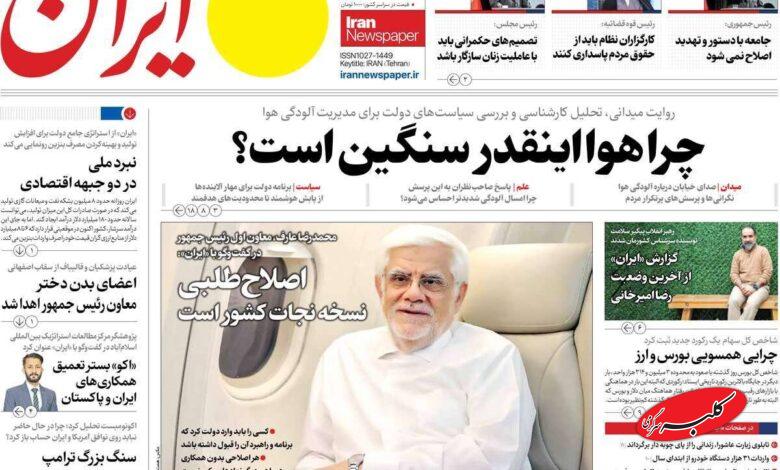 صفحه اول روزنامه های سه شنبه ۱۱آذر ۱۴۰۴/ مذاکره و آلودگی شاه بیت روزنامه ها