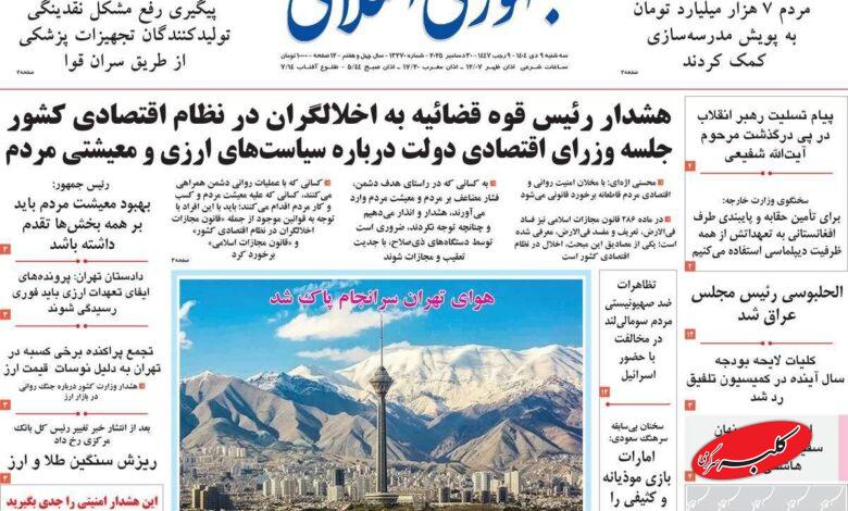 صفحه اول روزنامه های سه شنبه ۹دی ۱۴۰۴/ بازگشت همتی به دولت چهاردهم