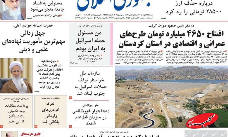 صفحه اول روزنامه های شنبه ۱۷آبان ۱۴۰۴
