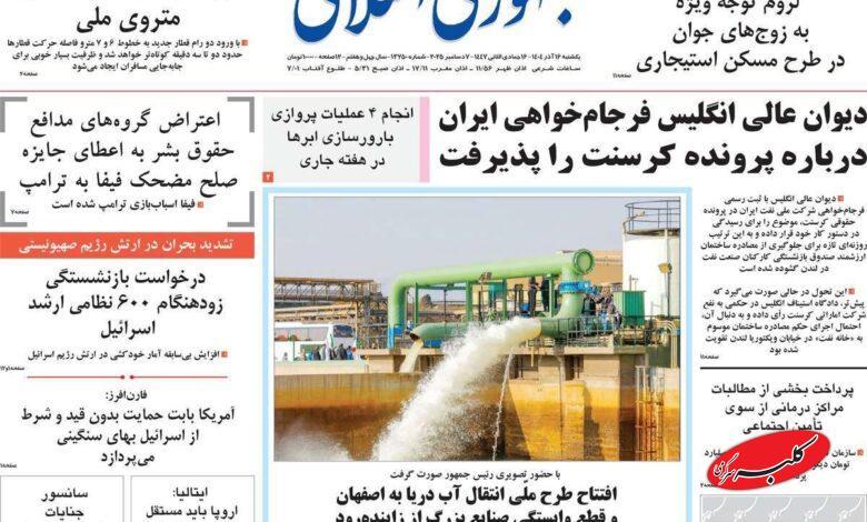 صفحه اول روزنامه های یکشنبه ۱۶ آذر ۱۴۰۴