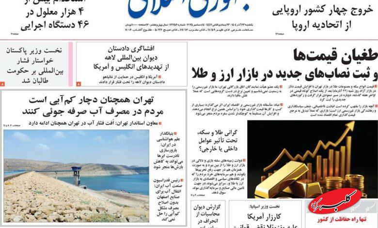 صفحه اول روزنامه های یکشنبه ۲۳آذر / روز آرام گران شدن بنزین