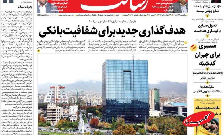 صفحه اول روزنامه های ۴شنبه ۲۸آبان ۱۴۰۴