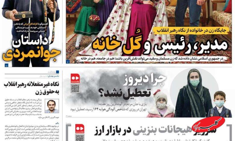 بیانات مهم رهبرمعظم انقلاب در جمع بانوان، تداوم آلودگی هوا ف تلاش امریکا برای پایان دادن به حیات سیاسی مادورو در ونزوئلا و…از تیترهای مطبوعات امروز است.