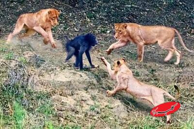 مقاومت مرگبار بابون در برابر شیرها! | ویدئو