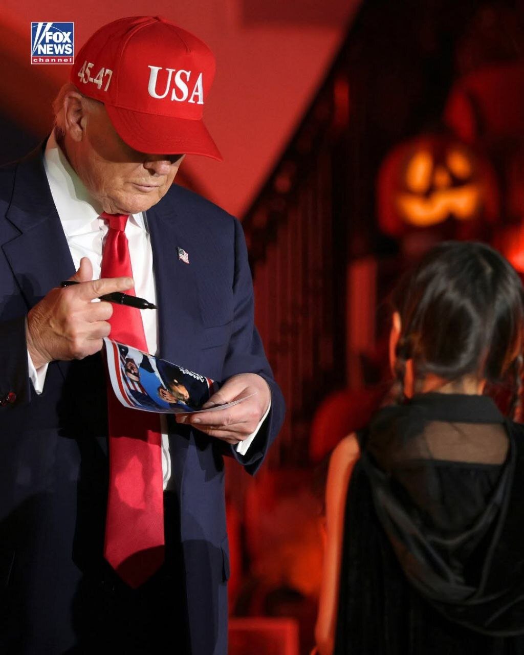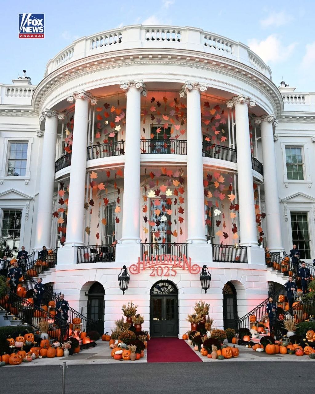 تصاویر منتشر شده از مراسم نشان میدهد که کاخ سفید با تزئینات سنتی هالووین پوشیده شده است.