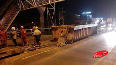 ببینید | لحظه نشست جاده و سقوط کامیون هنگام عبور از پل در محور سیریک-جاسک